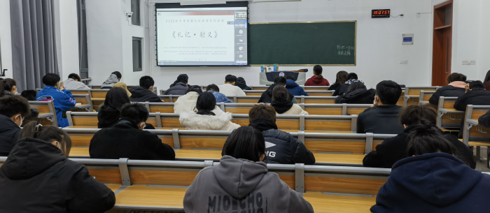 文化素质教育中心韩冰雪老师结合学校特色礼射文化对经典进行开篇解析,并播放荣获中华经典诵读活动江苏省一等奖的《礼记·射义》诵读作品,指出经典中所具有的精神内涵和思想观念对于当代大学生的教育意义。