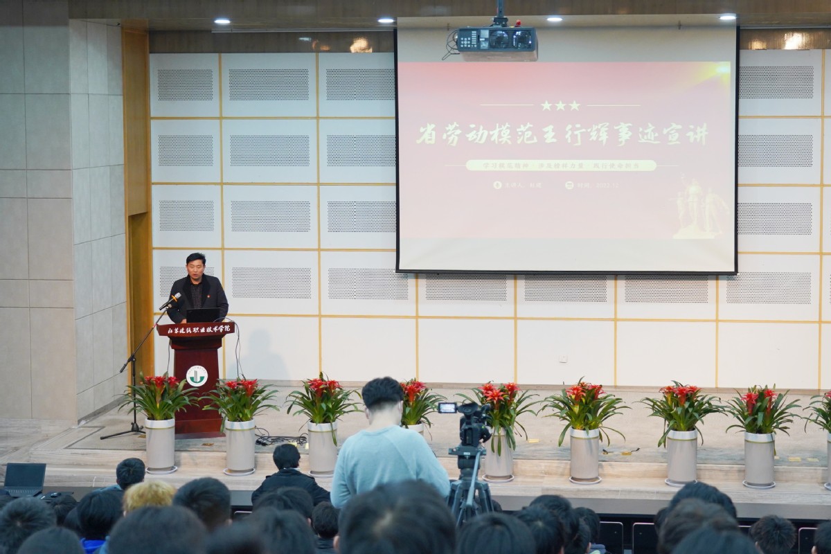 为推动深入学习宣传贯彻党的二十大精神,进一步诠释劳模精神、劳动精神、工匠精神,引领教育广大青年学子积极投身干事创业、技能报国实践,12月8日下午,由徐州市总工会牵头主办的“劳模工匠进校园”活动走进我校。活动邀请到全国劳模、全国五一劳动奖章获得者夏伯党和江苏省劳动模范王行辉故事的讲述人杜建来到现场,为200余名学生代表讲述劳模工匠成长过程。党委副书记梁惠,市工会宣网部副部长李东丽,校党委宣传部、人事处、工会、建筑建造学院、马克思主义学院等单位负责人参加活动。宣讲活动在图书馆报告厅举行。