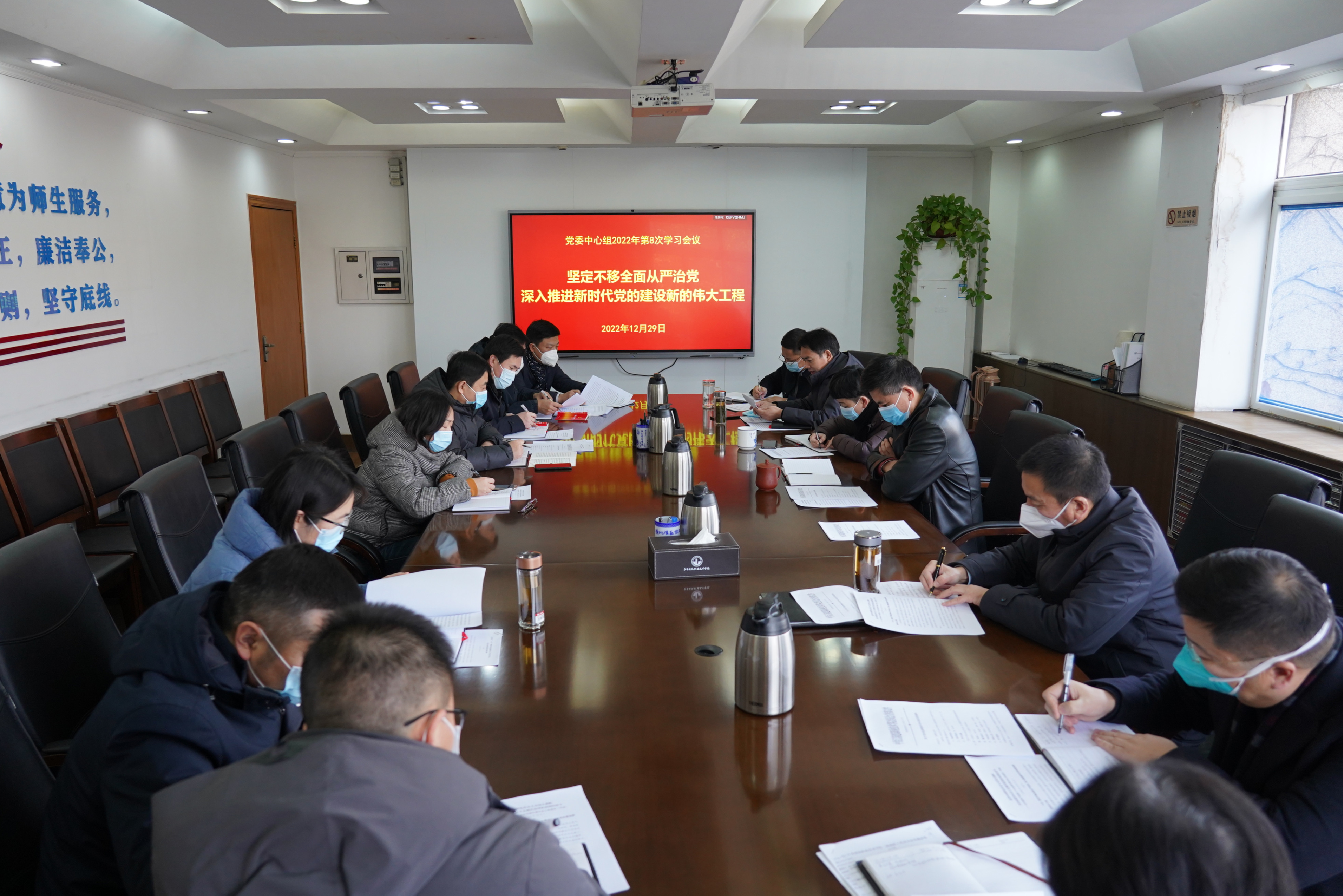 12月29日下午,学校党委理论学习中心组在行政楼第一会议室召开2022年第8次学习会议,专题学习党的二十大报告中的第十五部分:坚定不移全面从严治党,深入推进新时代党的建设新的伟大工程。党委书记朱东风主持会议,校党委理论学习中心组成员参加学习。