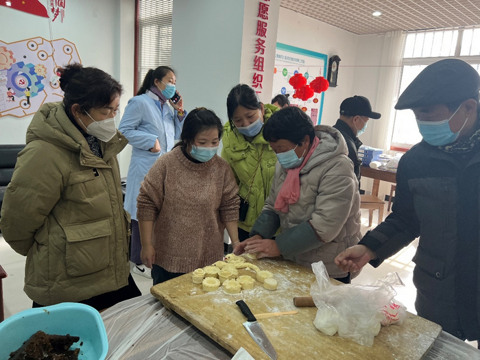 第二部分以送教上门的形式,江苏建院食堂面点师傅走进九里新苑社区,面对面讲授蒸面灯、滚汤圆等传统面点的起源和制作要点,手把手教授社区居民学习传统面点制作技巧和方法,并针对在场居民提出的问题进行详细解答和演示。美味的汤圆和栩栩如生的面灯受到在场居民的纷纷点赞。同时,社区孩子们展示了他们亲手制作的花灯,该社区魏书记和继续教育学院胡老师从设计理念、配色原则、制作技艺等方面对花灯进行了一一点评。
