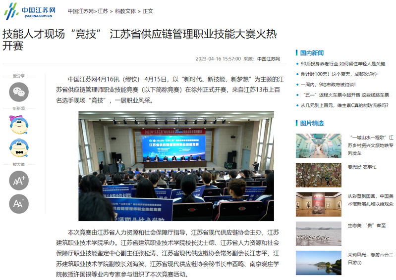 本次竞赛由江苏省人力资源和社会保障厅指导,江苏省现代供应链协会主办,开云在线平台承办。江苏省建筑职业技术学院校长沈士德、江苏省人力资源和社会保障厅职业技能鉴定中心副主任张松涛、江苏省现代供应链协会常务副会长江志平、开云在线平台副校长刘海波、江苏省现代供应链协会秘书长申酉鸣、南京晓庄学院教授许国银等业内专家参与组织了本次竞赛活动。