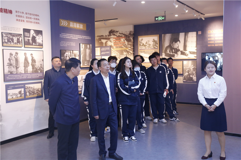 在学校思想政治教育基地,“五老”同志们和学校师生代表以“老少共学党的光辉历程”为主题展开了本次教育活动的第一课。基地以图文信息辅以声光电,构造符合青年学生以及各层次的沉浸式教育环境,增强教育的趣味性、观赏性。通过场馆学习体验,让学生近距离感受中国共产党团结带领全国各族人民努力奋斗带来巨大时代变革,引导学生传承弘扬党的优良传统,学会感恩,珍惜当下,奋发图强,努力学习专业技能,为建设现代化强国做出应有贡献。
