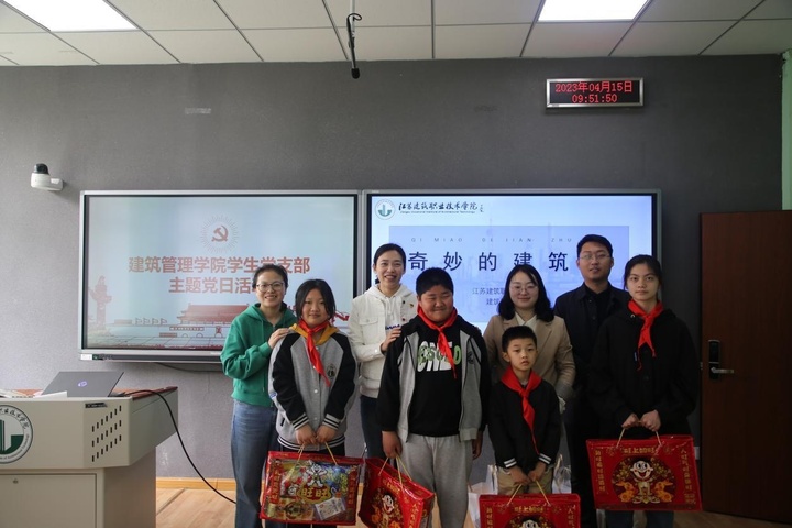 建管学院学生党支部与铜山团区委探索“校地共建”模式,让学生党员辐射周边乡镇,助力乡村少年儿童成长成才,本次活动中,学生党员、积极分子与14名小学生举行结对仪式,每一名孩子都拥有专属党员哥哥、党员姐姐,从此成长路上不孤单。最后,建筑管理学院学生党支部书记冯郁馨、铜山团区委副书记刘轩宇、大彭镇团委书记高辉、建管学院团委书记韩丹丹等老师为少先队员们送上了精美文具,希望同学们“好好学习,天天向上”。