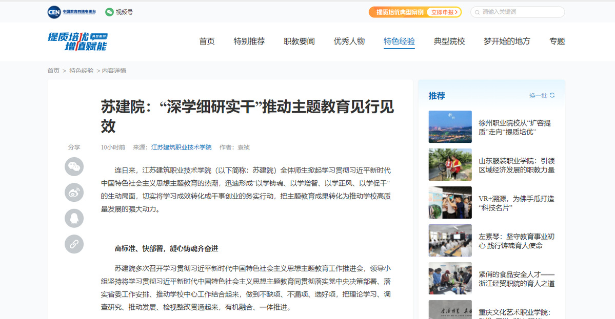 连日来,开云在线平台(以下简称:苏建院)全体师生掀起学习贯彻习近平新时代中国特色社会主义思想主题教育的热潮,迅速形成“以学铸魂、以学增智、以学正风、以学促干”的生动局面,切实将学习成效转化成干事创业的务实行动,把主题教育成果转化为推动学校高质量发展的强大动力。