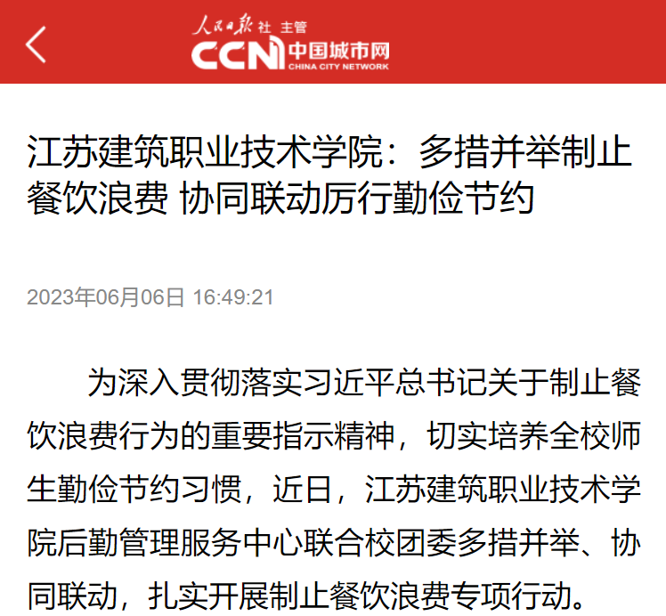 加强宣传教育,营造节约文化氛围。后勤管理服务中心将制止餐饮浪费列入食品安全健康宣传教育的重要内容,充分利用餐厅周边宣传栏、条幅、桌贴、墙壁文化等,多种形式宣传制止餐饮浪费,营造浓厚的节约文化氛围;在餐厅内循环播放反食品浪费视频《制止餐饮浪费,青年在行动》,让勤俭节约的理念内化于心、外化于行;通过“建院微后勤”“建院青年”微信公众号面向全校师生发出“厉行节约、反对浪费”的倡议,号召全校师生把勤俭节约根植于心,使光盘行动成为自觉,做节约粮食的示范者、传统美德的传承者、社会新风的推动者。