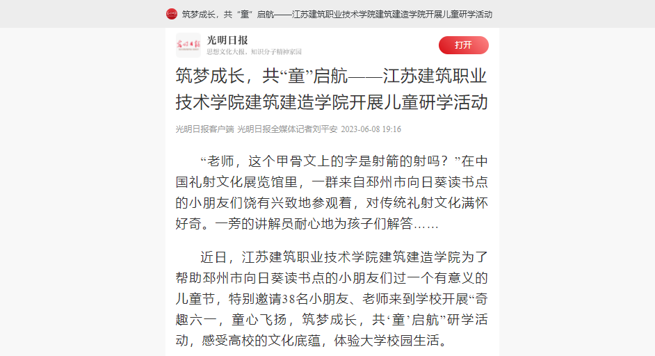 近日,开云在线平台建筑建造学院为了帮助邳州市向日葵读书点的小朋友们过一个有意义的儿童节,特别邀请38名小朋友、老师来到学校开展“奇趣六一,童心飞扬,筑梦成长,共‘童’启航”研学活动,感受高校的文化底蕴,体验大学校园生活。