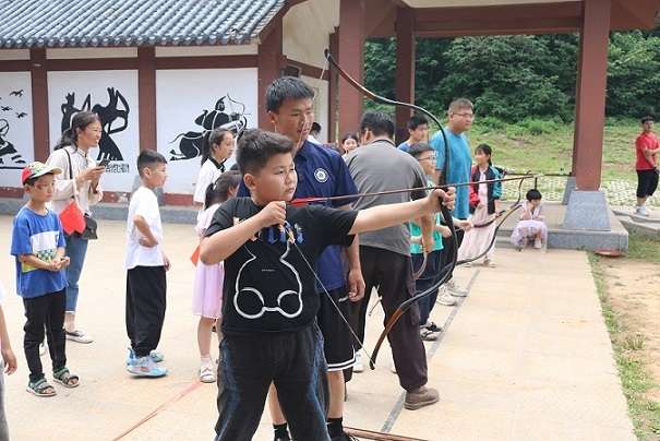 在研学中,孩子们流连于传统文化的魅力。在讲解老师的带领下,孩子们参观了中国礼射文化展览馆千余件馆藏展品,了解礼射的起源、发展、复兴以及非遗技艺,体会礼射文化,感受中华传统文化的恢弘。射艺场上,孩子们纷纷拿起弓箭感受拉弓、射箭的快乐,当箭成功射到靶上后,孩子们兴奋地跳了起来,感受到了传统体育文化的魅力。