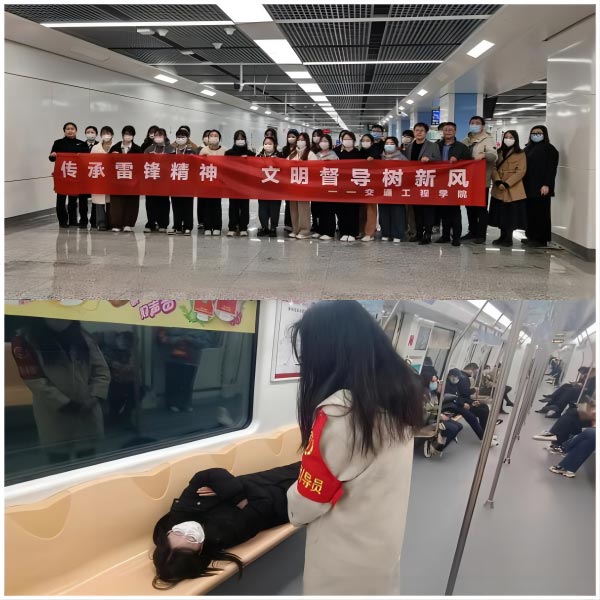 用实际行动践行党的二十大,党的二十大报告指出“推动明大德、守公德、严私德,提高人民道德水准和文明素养”。结合学院专业特点,学院与徐州地铁“乐服务·畅彭城”品牌车站达成志愿服务合作伙伴关系,共同开展文明督导树新风志愿服务活动,旨在规范乘车行为,提高市民乘客文明出行意识,引导学生用实际行动传雷锋精神,树文明新风。此次活动开展持续一个月,共计1200人次参与。