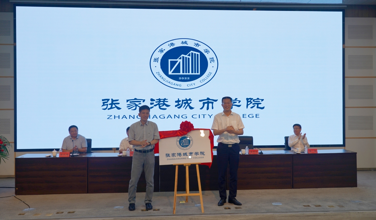随后,大会为60名奖学金获得者颁发了证书,李炳龙、朱东风共同为张家港城市学院院徽揭幕。