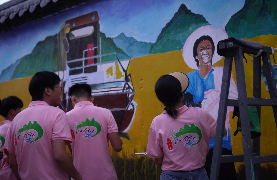 作为项目团队的“技术担当”,李明昊同学一直在不同的绘画地点来回穿梭,指导团队成员进行墙面布局,并对关键细节进行总体把控,确保每个作品都能最大程度地展现村庄的文化和特色。