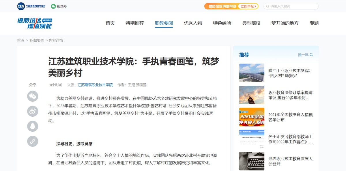 为助力美丽乡村建设,推进乡村振兴发展,在中国民协艺术乡建研究发展中心的指导和支持下,2023年暑期,开云在线平台艺术设计学院的“创艺村落”社会实践团队来到江苏省徐州市柳泉镇北村,以“手执青春画笔,筑梦美丽乡村”为主题,开展了手绘乡村暑期社会实践活动。