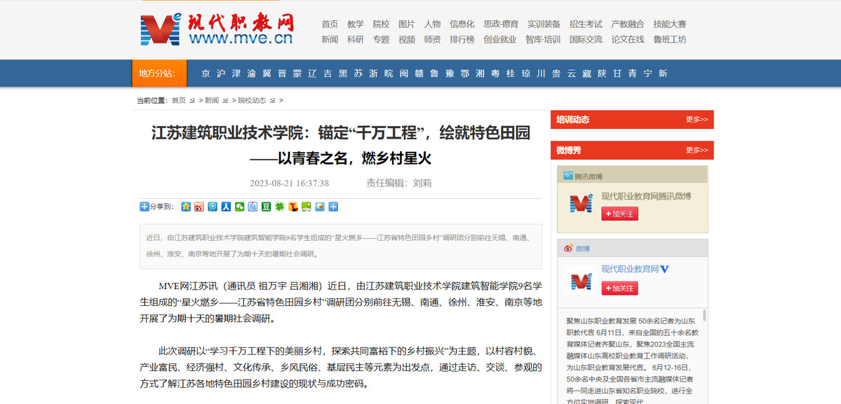 MVE网江苏讯(通讯员 祖万宇 吕湘湘)近日,由开云在线平台建筑智能学院9名学生组成的“星火燃乡——江苏省特色田园乡村”调研团分别前往无锡、南通、徐州、淮安、南京等地开展了为期十天的暑期社会调研。