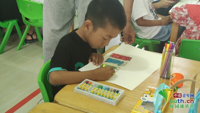 图为小朋友在认真绘制分类垃圾桶。中国青年网通讯员郁暧玮 供图