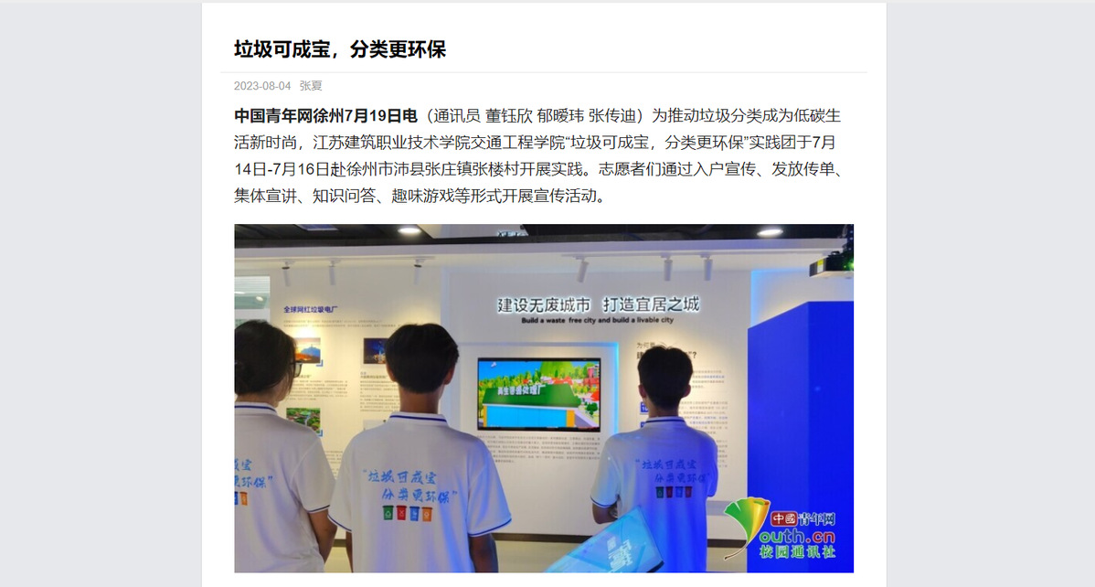 中国青年网徐州7月19日电(通讯员 董钰欣 郁暧玮 张传迪)为推动垃圾分类成为低碳生活新时尚,开云在线平台交通工程学院“垃圾可成宝,分类更环保”实践团于7月14日-7月16日赴徐州市沛县张庄镇张楼村开展实践。志愿者们通过入户宣传、发放传单、集体宣讲、知识问答、趣味游戏等形式开展宣传活动。