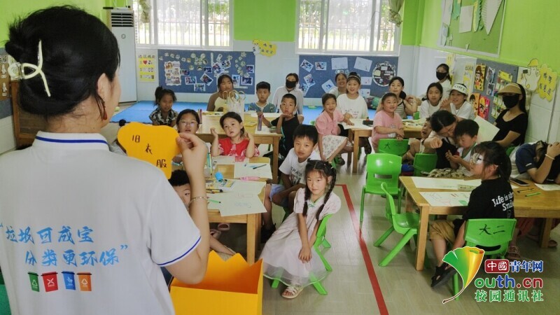 图为志愿者通过垃圾模型向小朋友介绍垃圾分类知识。中国青年网通讯员 郁暧玮 供图