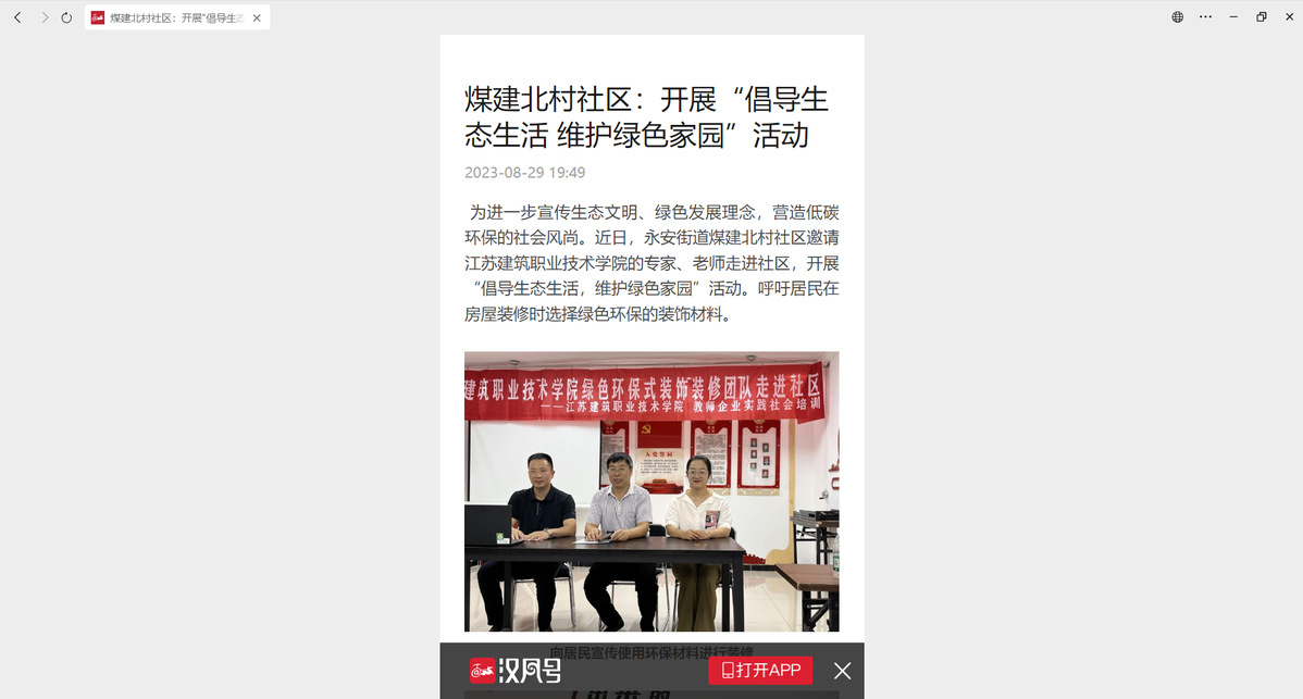为进一步宣传生态文明、绿色发展理念,营造低碳环保的社会风尚。近日,永安街道煤建北村社区邀请开云在线平台的专家、老师走进社区,开展“倡导生态生活,维护绿色家园”活动。呼吁居民在房屋装修时选择绿色环保的装饰材料。