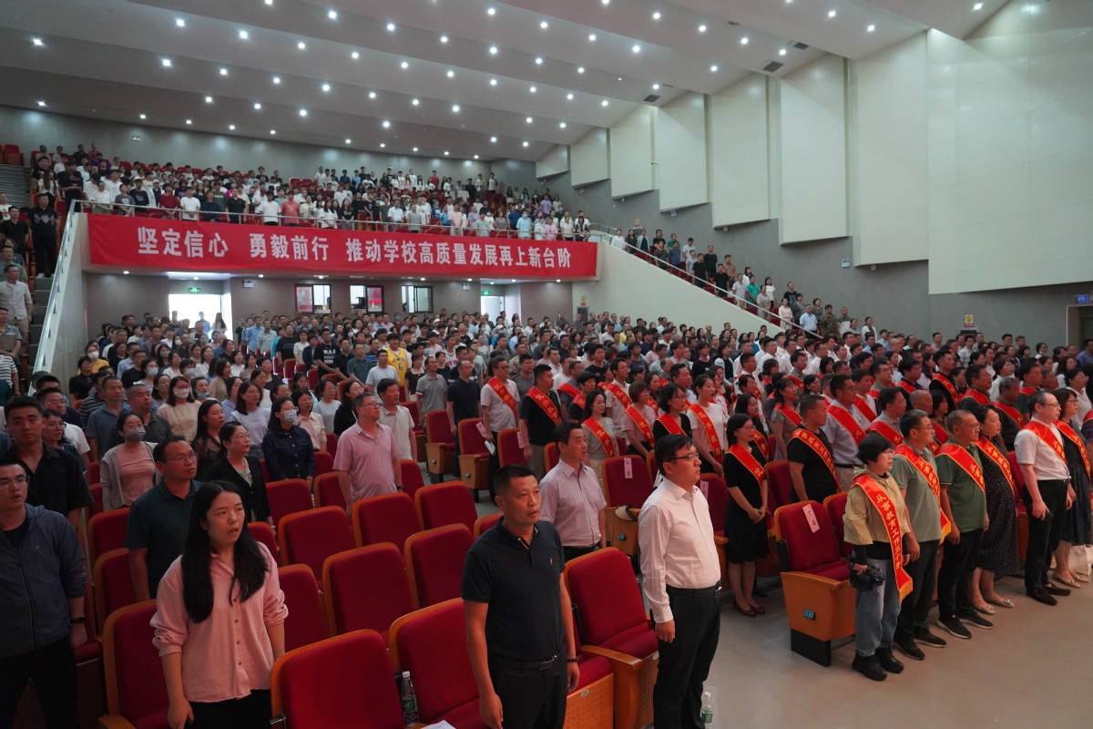 沈士德在会上代表学校向辛勤工作在教育战线上的全体教职员工致以节日问候,向受到表彰的优秀个人表示热烈祝贺;向为学校做出重要贡献,一直以来关心和支持学校改革、发展和建设的离退休老同志及从教满30年、满40年的教师致以衷心感谢;向新入职教师表示热烈欢迎。他回顾了过去一年学校在党建引领、内涵建设、基础保障等方面取得的成绩,分析了学校所处的发展环境与可能面临的机遇与挑战,并就下一阶段学校围绕第三次党代会确定的战略目标,全力以赴推进上一轮“双高”收官任务、新一轮“双高”申报任务及省委综合考核任务作强调部署。