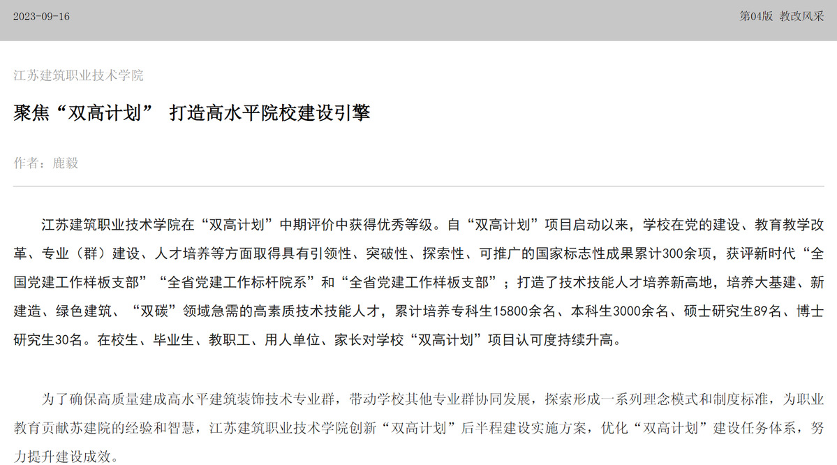 为了确保高质量建成高水平建筑装饰技术专业群,带动学校其他专业群协同发展,探索形成一系列理念模式和制度标准,为职业教育贡献苏建院的经验和智慧,开云在线平台创新“双高计划”后半程建设实施方案,优化“双高计划”建设任务体系,努力提升建设成效。
