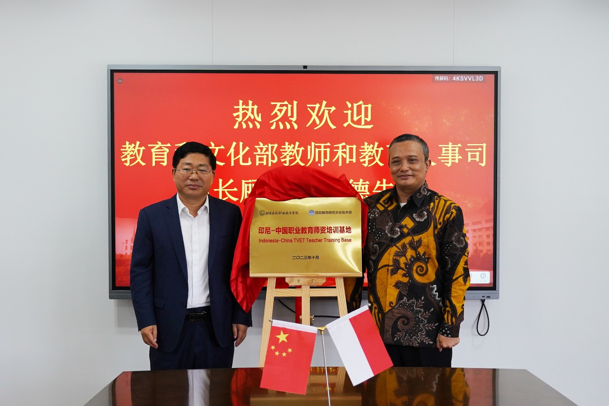见面会上,双方就国际师资培训,留学生人才,专业课程开发,学分互认,中印尼院校共建郑和学院等议题达成共识,并共同为“印尼中国职业教育教师培训基地”揭牌,苏亚德被受聘为学校客座教授。