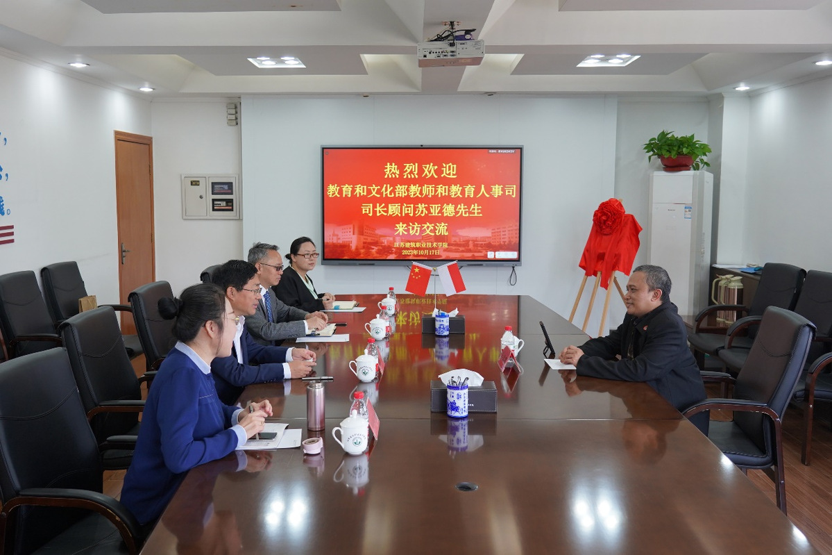 10月17日上午,印尼教育文化部教师与教育人事司司长顾问、东南亚教育部长组织区域开放学习中心副主任、印度尼西亚前驻华使馆教育文化参赞苏亚德来访我校。校长、党委副书记沈士德及国际合作交流处相关同志在行政楼第一会议室接待来访客人。