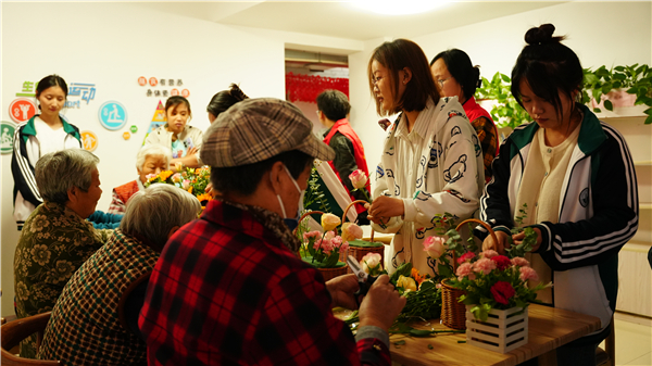 中国江苏网10月23日徐州讯 金橘丹桂飘香,九九重阳敬老。为传承中华民族“尊老、爱老、敬老”的传统美德,提升老年人生活幸福指数,10月21日下午,江苏建院建筑装饰学院团委组织学生志愿者赴泰山社区开展“孝老敬老暖人心,共建共享社区情”志愿服务活动,通过文艺汇演、花艺展示、书法绘画等方式,以实际行动传递尊老、爱老、敬老的社会风尚。