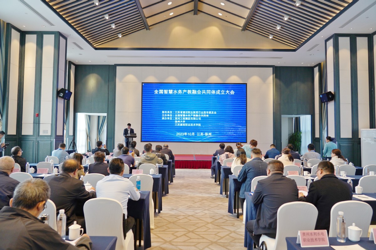 为促进区域产教布局匹配度、服务校企高效对接、支撑全行业发展,10月27日,由我校牵头发起的全国智慧水务产教融合共同体成立大会在徐州宝信君澜酒店举行。校长、党委副书记沈士德,扬州大学水利科学与工程学院党委书记王建军,淮河工程集团有限公司党委书记、总经理王建新以及来自全国119个成员单位的代表参加了本次大会。会议由我校建筑智能学院张宝军教授主持。
