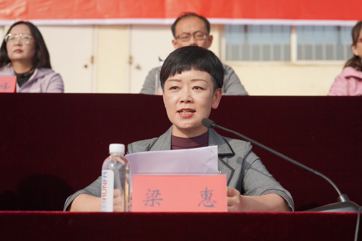 梁惠致开幕辞。致辞中,她强调了体育工作的重要位置,梳理了近一年我校体育发展取得了丰硕成果,并就办好运动会提出了两点希望:一是希望全体运动员都能以昂扬的斗志和顽强的精神,积极参赛,赛出风格、赛出成绩,充分享受体育带来的快乐;二是希望全体工作人员积极做好运动会服务保障工作,维护赛场纪律,保证赛场安全,让赛场成为师生情感互动的场所,让赛场成为别样的育人课堂。