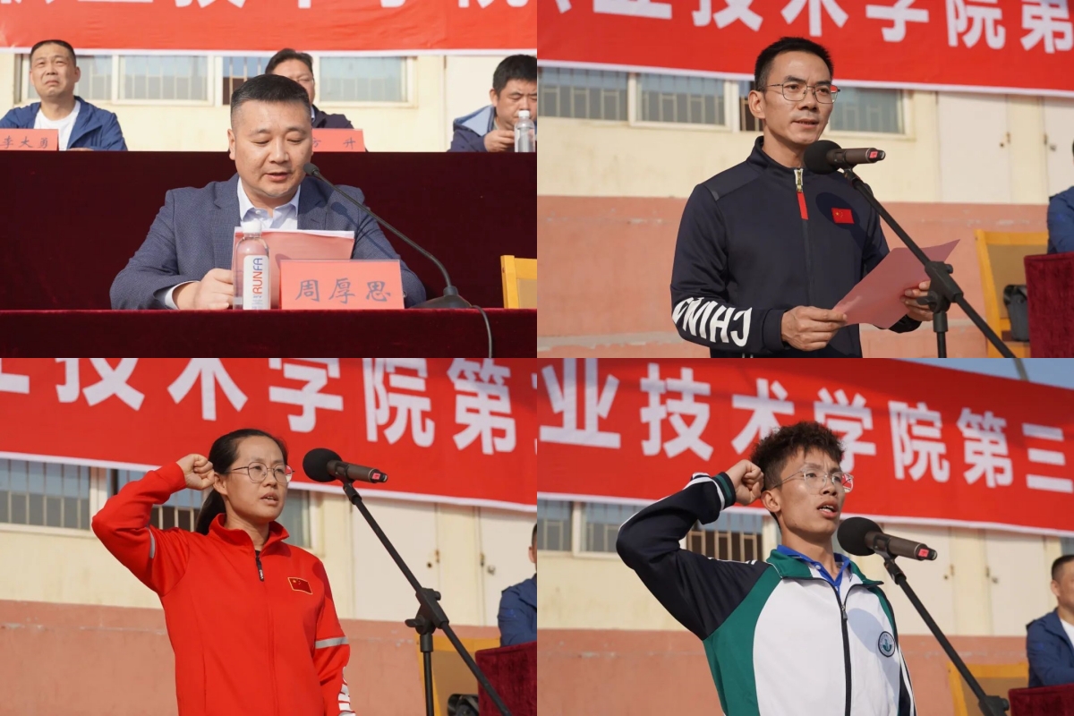 致辞过后,公共基础学院教师宋晓芬、建筑管理学院建管23-3班学生张雨涵分别代表裁判员、运动员进行了宣誓。公共基础学院院长曹万俊代表运动会组委会宣读了运动会注意事项。