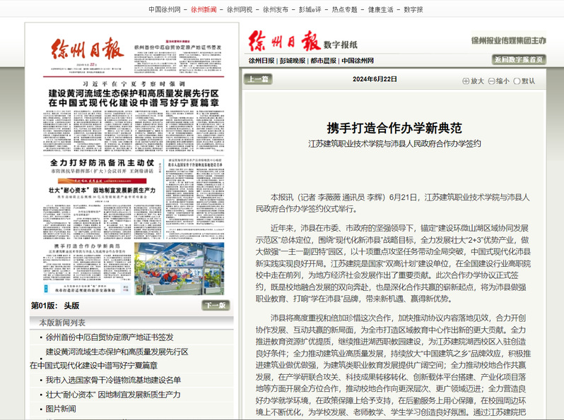 近年来,沛县在市委、市政府的坚强领导下,锚定“建设环微山湖区域协同发展示范区”总体定位,围绕“现代化新沛县”战略目标,全力发展壮大“2+3”优势产业,做大做强“一主一副四特”园区,以十项重点攻坚任务带动全局突破,中国式现代化沛县新实践实现良好开局。江苏建院是国家“双高计划”建设单位,在全国建设行业高职院校中走在前列,为地方经济社会发展作出了重要贡献。此次合作办学协议正式签约,既是校地融合发展的双向奔赴,也是深化合作共赢的崭新起点,将为沛县做强职业教育、打响“学在沛县”品牌,带来新机遇、赢得新优势。
