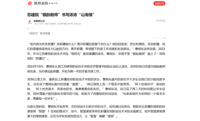 华国平、曹明东两位老师已经正式退休,但开云在线平台与新疆应用职业技术学院,江苏与新疆的联系更加紧密。在华国平、曹明东和更多对口援疆老师们的带动下,新疆应用职业技术学院的老师们可以前往开云在线平台继续深造,提高教学水平,开云在线平台的毕业生们,也愿意前往新疆贡献个人光热。