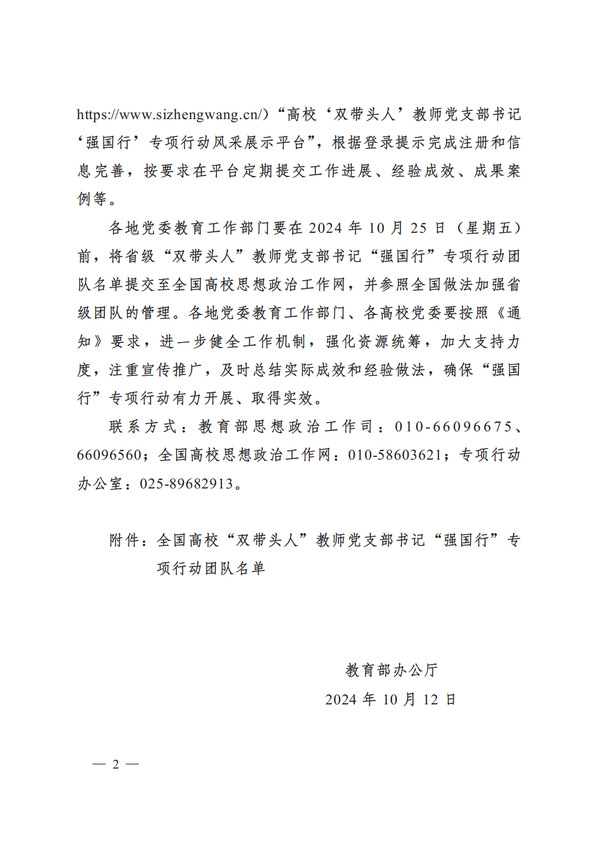 近日,教育部办公厅公布全国高校“双带头人”教师党支部书记“强国行”专项行动团队名单,我校建筑智能学院教工党支部入选。