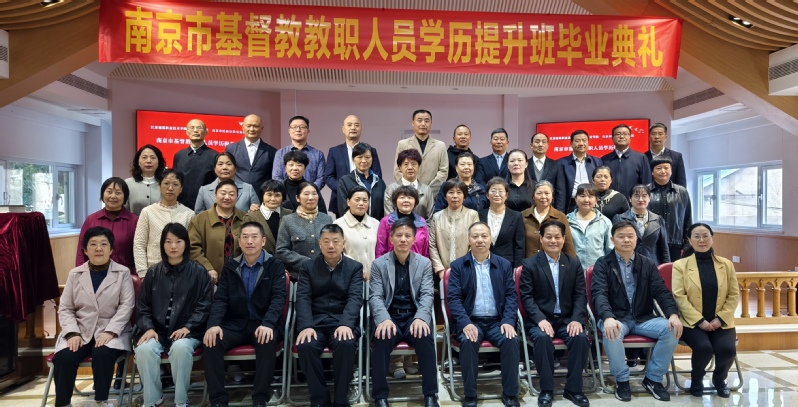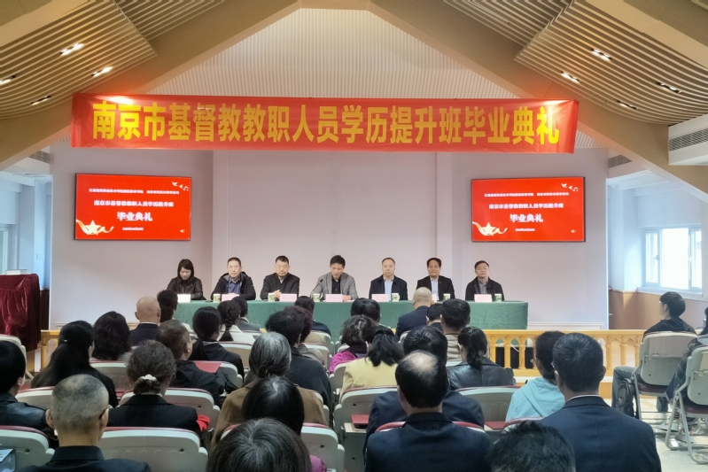 10月25日上午,我校在南京市举行首届南京市基督教教职人员学历提升班毕业典礼。南京市民族宗教事务局副局长王键、江苏省基督教三自爱国运动委员会主席阚仁平、南京市基督教协会会长李兰成、我校党委书记朱东风出席毕业典礼,学历提升班学员及双方单位相关部门负责人参加典礼。典礼由我校继续教育学院院长、党支部书记潘峰主持。