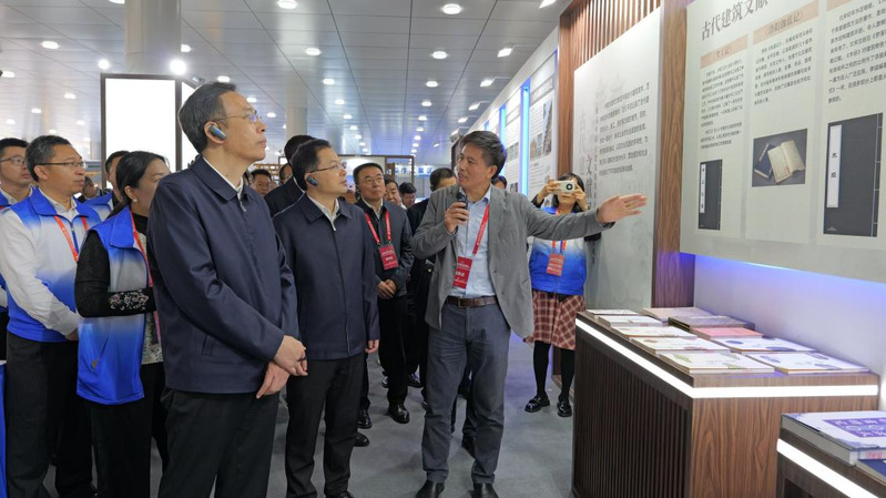 活动中,我校党委书记朱东风向王晖副部长、李中副省长等领导详细介绍了此次古建筑工技术技能展区的主题和六大特色模块,包括主轴古建筑模型、古建筑发展演变、古代建筑城市发展、传统建筑构造构件、古建筑文献和木作、瓦作、彩画等古建筑八大作,并向与会领导汇报了我校在高层次建筑技术技能人才培养和职业本科创建的相关工作。