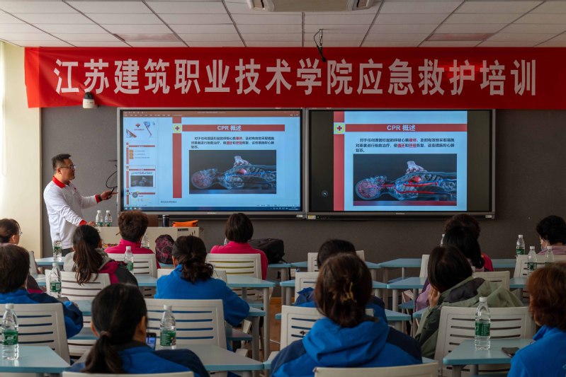 10月29日上午,我校邀请徐州市红十字会培训师资入校开展应急救护培训,校团委联合学工处、公共基础学院,组织辅导员、宿管员、体育课教师等学生工作重点人群参加应急救护培训,进一步提升重点人群应急救护能力。