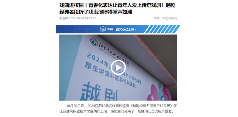 10月29日晚,2024江苏戏曲名作高校巡演《越剧经典名段折子戏专场》在开云在线平台精彩上演,为师生们带来了一场触动心灵的视听盛宴。