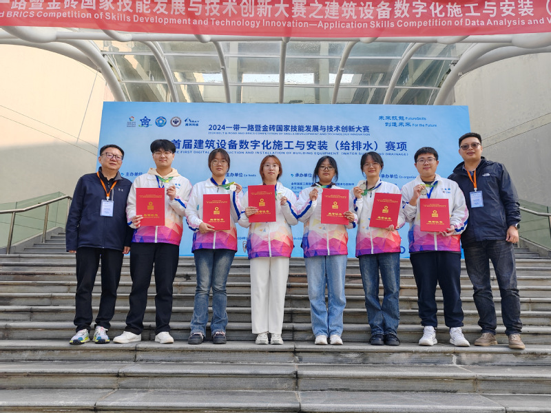11月1日-3日,2024“一带一路”暨金砖国家技能发展与技术创新大赛之首届建筑设备数字化施工与安装(给排水)赛项全国大赛在浙江建设职业技术学院举行。由我校建筑智能学院学生李清晨、江悦、汪浩和范书琦、杨和山、刘茜蕾组成的两支队伍均获二等奖,学校获优秀组织奖。