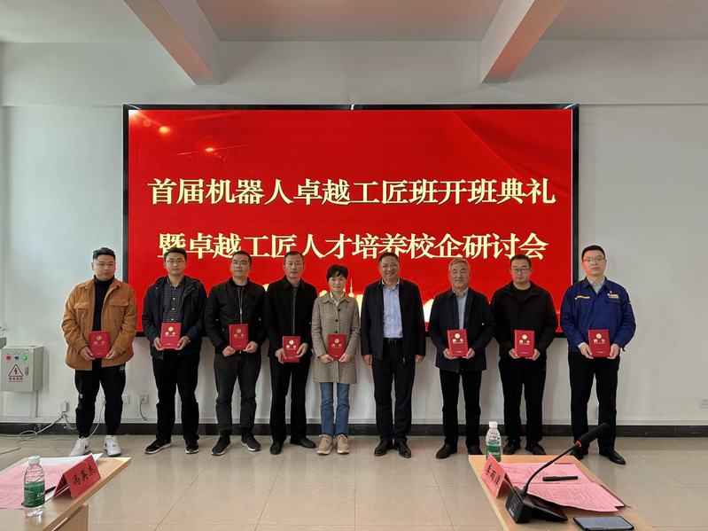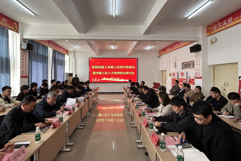 11月5日,我校举办首届机器人卓越工匠班开班典礼暨卓越工匠人才培养校企研讨会。党委委员、副校长蒋兆峰,徐州工业职业技术学院、江苏安全技术职业学院、江苏师范大学、徐州工程学院、徐工基础工程机械事业部、徐州徐工汽车制造有限公司、江苏省特种机器人产品质量监督检验中心、徐州北矿智能科技有限公司、徐州考拉机器人科技有限公司等12家校企单位领导、部门负责人出席会议,学校教务处、校企合作处、实验实训处、卓越工匠学院、智能制造学院等部门负责人及首届机器人卓越工匠班的全体学生参加会议。