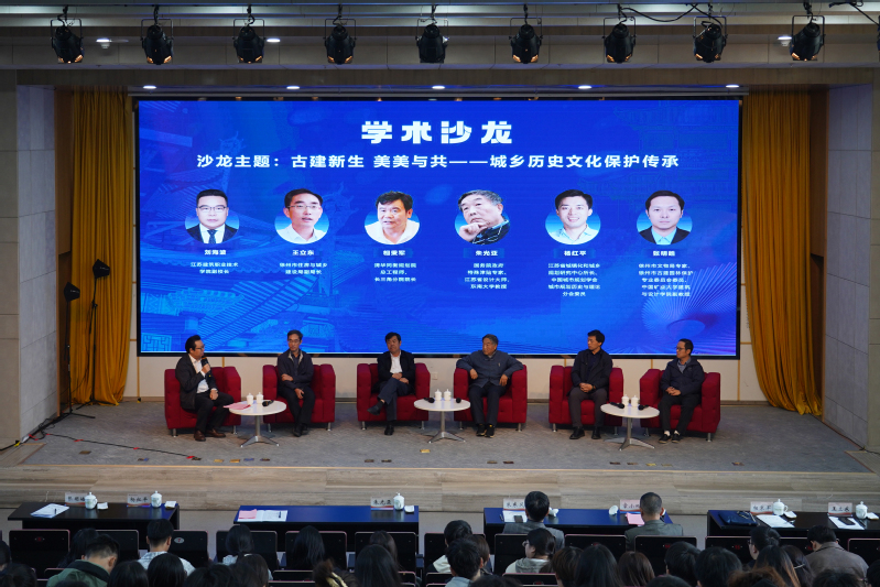 11月8日,由江苏省建筑文化研究会、江苏省建设职业教育行业指导委员会和我校联合主办的“古建新生 美美与共——城乡历史文化保护传承”学术沙龙活动在学校图书馆报告厅举行。国际绿色建筑联盟执行主席、省建筑与历史文化研究会会长刘大威,省建设职业教育行业指导委员会主任、省建筑文化研究会常务副会长章小刚,省设计大师、东南大学教授朱光亚,省城镇化和城乡规划研究中心所长、省历史与建筑文化研究会历史文化保护传承委员会秘书长杨红平,徐州市住房和城乡建设局副局长王立东,徐州市文物局专家、中国矿业大学建筑与设计学院副教授张明皓出席活动。校党委书记朱东风,党委委员、副校长刘海波,党委委员、副校长蒋兆峰以及学校相关专业师生代表参加活动。