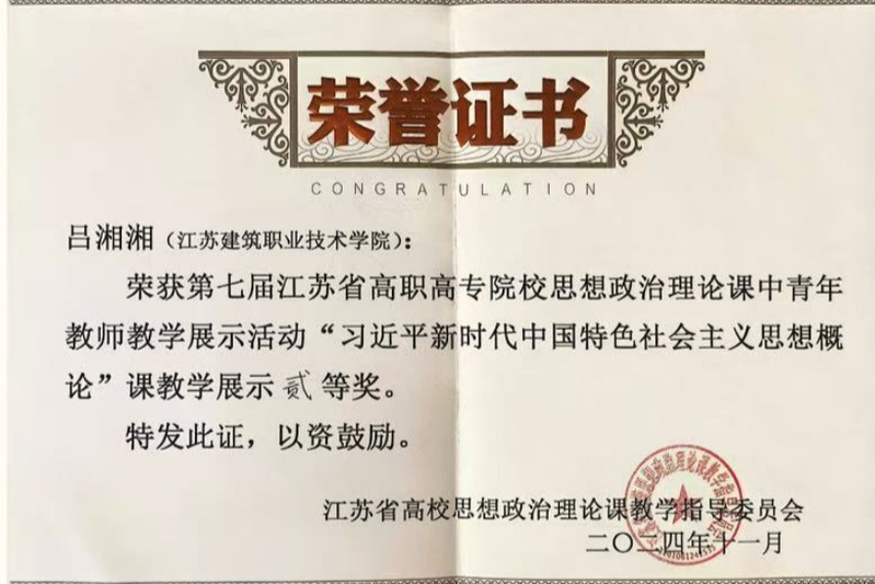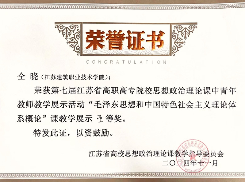 近日,第七届江苏省高职高专院校思想政治理论课中青年教师教学展示活动落下帷幕,我校马克思主义学院教师仝晓、高凯旋分获“毛泽东思想和中国特色社会主义理论体系概论”课程组、“形势与政策”课程组一等奖,吕湘湘获“习近平新时代中国特色社会主义思想概论”课程组二等奖。