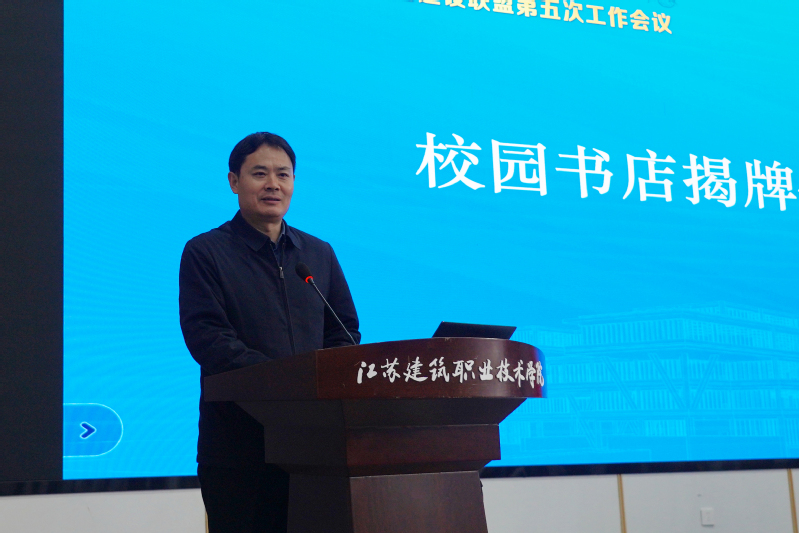 会上,沈士德代表学校对各位嘉宾莅临指导表示热烈的欢迎和衷心的感谢。他简要介绍了我校历史沿革、办学理念、人才培养成就及当前职本创建情况,回顾了我校与中国建筑工业出版社多年来在教材出版、图书捐赠等方面所取得的合作成果,并充分肯定了我校在建工出版社建社70周年之际成为建设类高校校园书店联盟新成员的重大意义。他表示,希望校社双方能够以此次会议为契机,在深化交流合作的基础上,继续加强教材出版、学校“新双高”建设、文化育人工程等方面的合作,发挥好校园书店在我校教师发展、学生成长中的支点桥梁作用。同时,他还希望校企社三方充分落实三方协议精神,将校园书店建设成为学生打卡的网红点、校园文化的会客厅、学术交流的新中心。