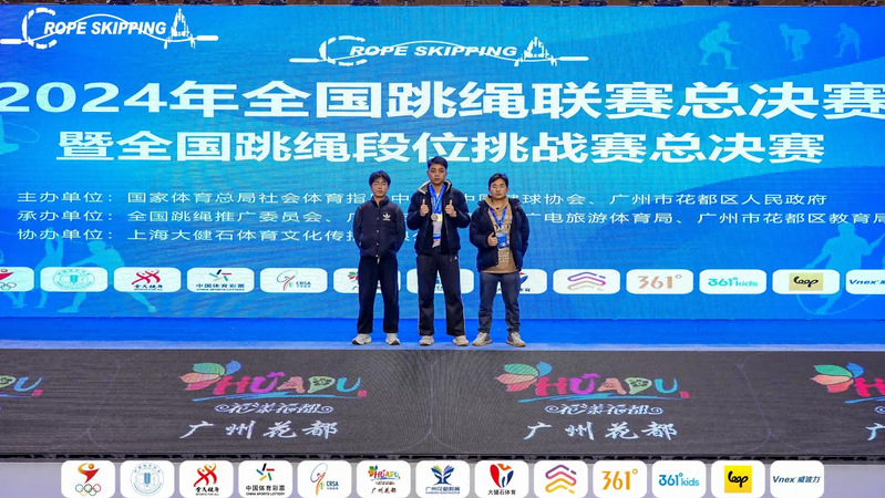 近日,全国跳绳联赛总决赛暨全国跳绳段位挑战赛总决赛在广州举行,我校装饰22-1班张棒棒以30秒208跳的成绩获得公开青年组第一名,建工23-1班李馥均获得30秒交叉单摇跳第三名。此外,张棒棒与城轨23-1班何款在30秒双摇接力比赛中获得了第七名。