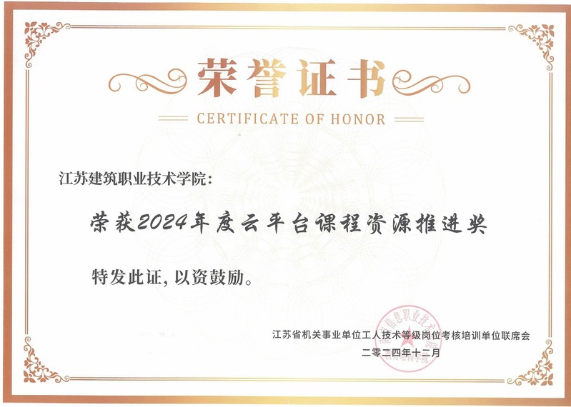 近日,由江苏省人力资源和社会保障厅工考办及江苏省机关事业单位工人技术等级岗位考核培训单位联席会组织的2024年全省机关事业单位工勤人员继续教育云平台年度会议在南京召开,会议为我校颁发了“2024年度云平台课程资源推进奖”。