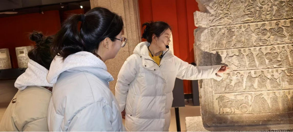 活动中,学生们以小组为单位,围绕“汉代农耕图”“车马出行图”等展品,将文物背后的历史与思政课的爱国主义、社会主义核心价值观等内容结合,让静态的汉画像石成为“会说话”的教材。