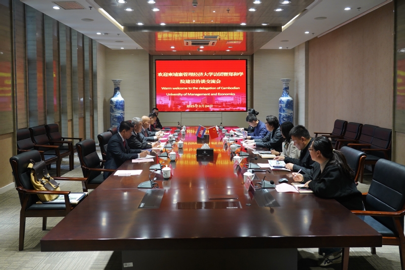 会上,刘海波对费科迪一行的到访表示欢迎,并简要介绍了我校近期办学的重大事项、转型升级的主要举措及未来的发展目标。他指出,我校为应对产业转型,积极调整专业结构,在教学手段和教学内容中引入了人工智能技术,并制定了绿色化、生态化的发展目标。同时,他还详细介绍了我校目前柬埔寨郑和学院(金边)的运行情况,希望接下来能够与管理经济大学合作建设郑和学院马德望校区,共同开设数字营销、物流管理和软件技术等专业的招生和培养。