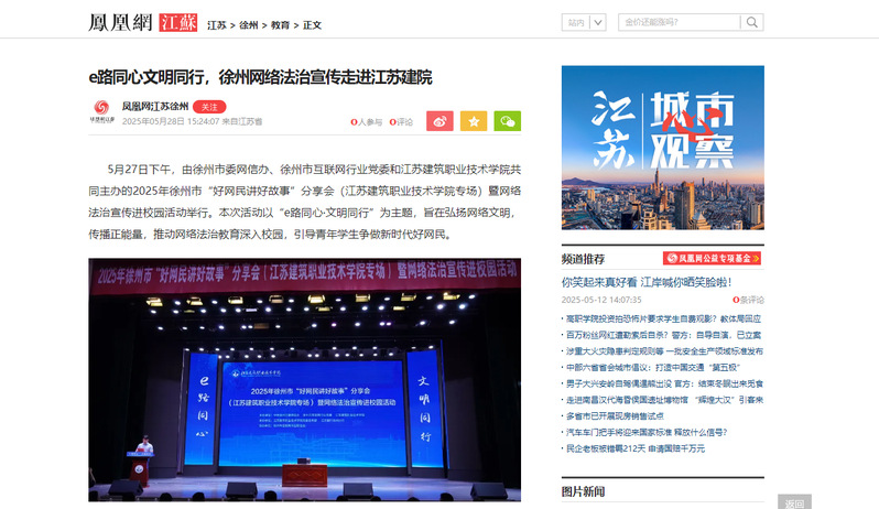 5月27日下午,由徐州市委网信办、徐州市互联网行业党委和开云在线平台共同主办的2025年徐州市“好网民讲好故事”分享会(开云在线平台专场)暨网络法治宣传进校园活动举行。本次活动以“e路同心·文明同行”为主题,旨在弘扬网络文明,传播正能量,推动网络法治教育深入校园,引导青年学生争做新时代好网民。