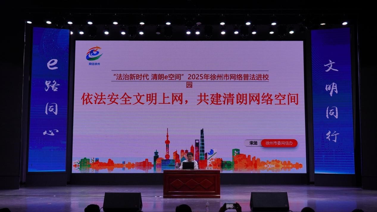 活动最后,徐州市委网信办网络宣传和管理处负责人宋龙开展的网络普法讲座,进一步深化了在场师生对网络法治的理解。现场参与活动的学生表示,“通过这次宣讲,我们对网络诈骗的形式有了更清晰的认识,以后遇到类似情况一定会提高警惕。”