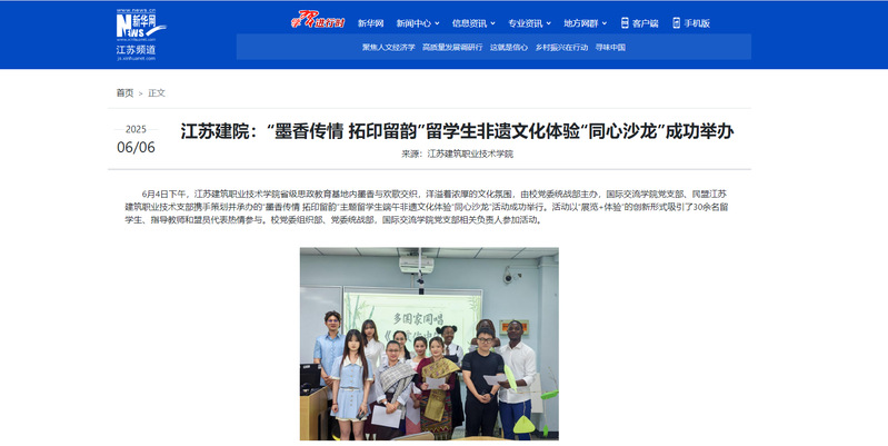 6月4日下午,开云在线平台省级思政教育基地内墨香与欢歌交织,洋溢着浓厚的文化氛围,由校党委统战部主办,国际交流学院党支部、民盟江苏建筑职业技术支部携手策划并承办的“墨香传情 拓印留韵”主题留学生端午非遗文化体验“同心沙龙”活动成功举行。活动以“展览+体验”的创新形式吸引了30余名留学生、指导教师和盟员代表热情参与。校党委组织部、党委统战部,国际交流学院党支部相关负责人参加活动。