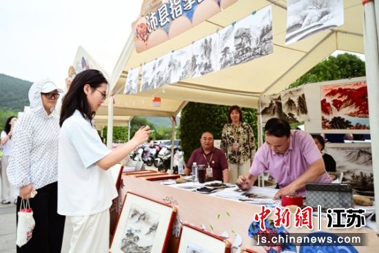 游客观看沛县指掌画创作。铜山区文体广电和旅游局供图