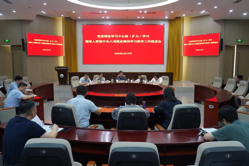 6月19日上午,学校党委理论学习中心组在学术报告厅召开党委理论学习中心组(扩大)学习暨深入贯彻中央八项规定精神学习教育工作推进会。党委书记朱东风主持会议,校党委理论学习中心组成员,各党总支(直属党支部)书记及有关部门负责人参加学习。