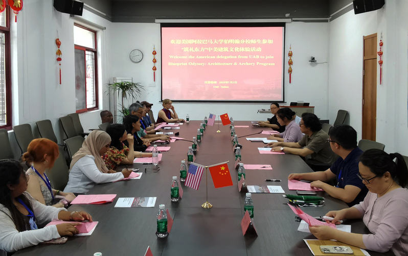 7月2日,美国阿拉巴马大学伯明翰分校师生代表团一行14人来访我校,参加“筑礼东方”中美建筑文化体验主题活动。党委委员、副校长刘海波出席交流洽谈会并致辞,我校欧美同学会、留美教师代表及国际交流学院相关工作人员参加活动。活动由国际交流学院副院长王静主持。